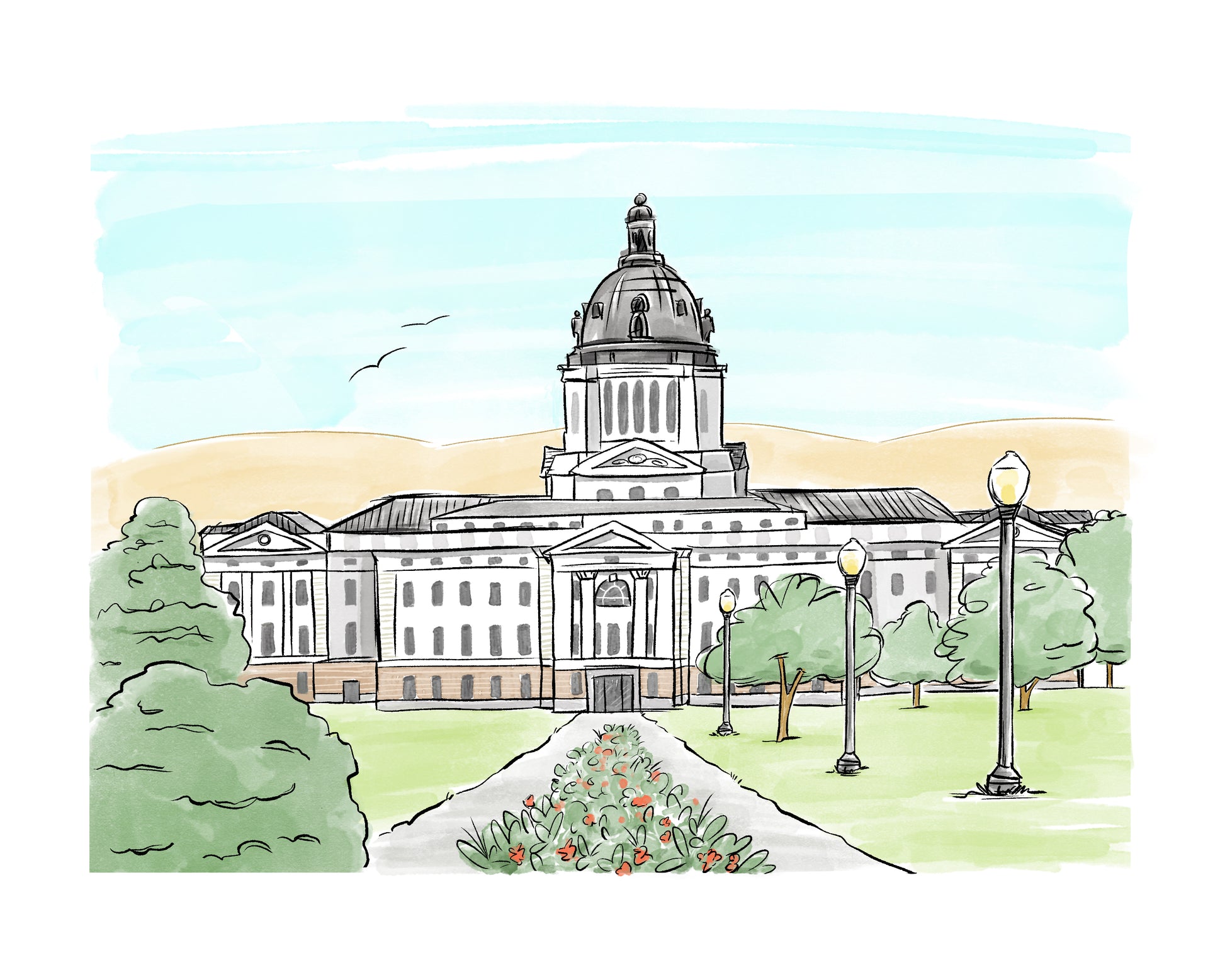 The state capitol building in Pierre, South Dakota is an architectural beauty that can be enjoyed in your own home with this print!